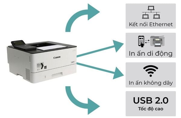 Máy in Canon LBP 223Dw tích hợp sẵn tính năng in ấn qua mạng Lan có dây và không dây WiFi giúp bạn kết nối dễ dàng và in ấn thuận tiện hơn, nhờ tính năng này văn phòng cơ quan bạn có thể dùng chung thiết bị mà không cần phụ thuộc vào máy chủ.